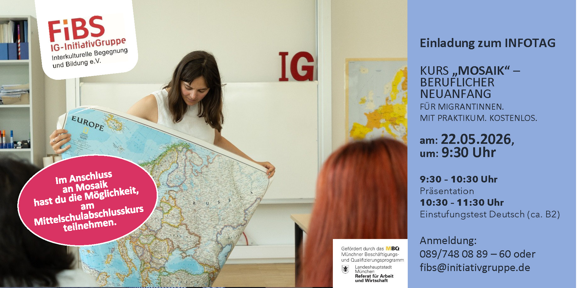 Telefon: 089/ 748 08 89 - 60 oder per E-Mail: fibs@initiativgruppe.de